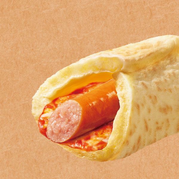 トマトベースのソースにソフトサラミソーセージとチーズをあわせてもちもち生地で包んだブリトーです。