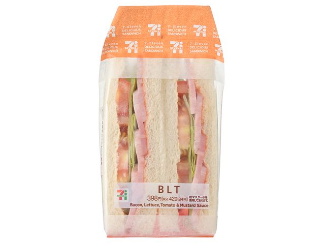 ベーコン、レタス、トマトを盛り付け、粒マスタードマヨネーズとケチャップソースの2種のソースで仕立てたBLTサンドです。