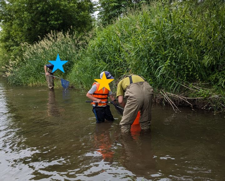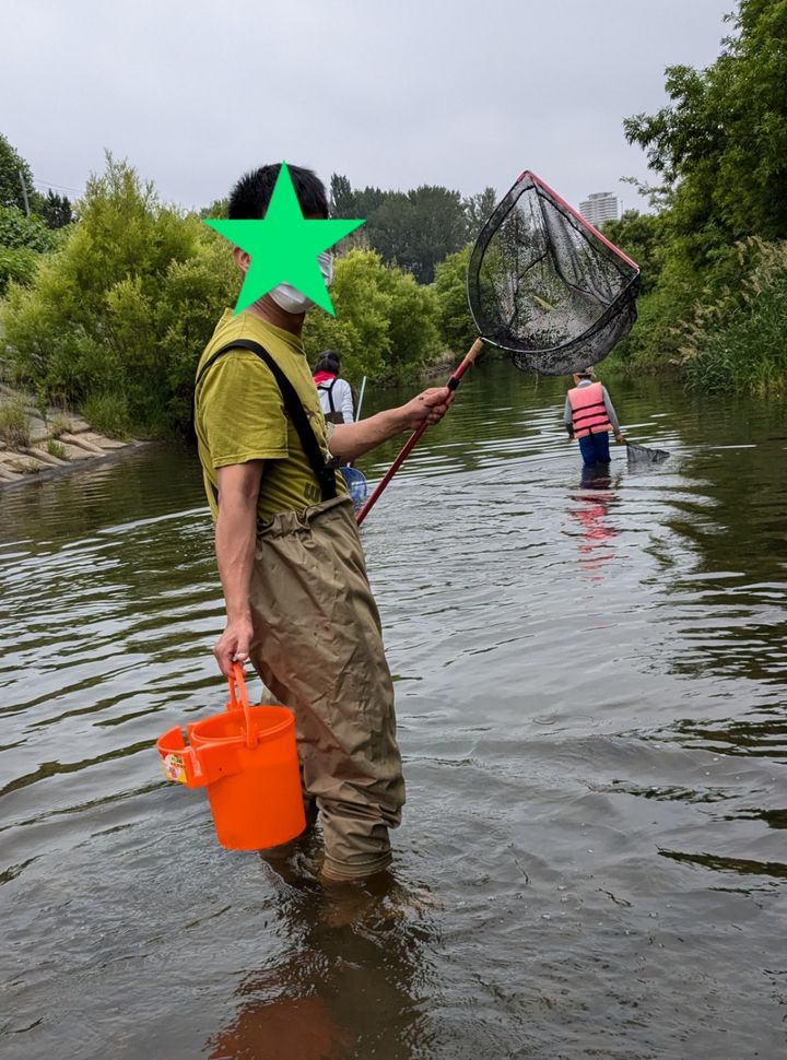今回向かった川は琴似発寒川という川で、淡水魚はヤマメやウグイ、ドジョウ、ゴリ等34種の淡水魚の生息が確認されているそうです。秋にはサケやサクラマスの自然産卵が確認出来るとか!!エビやカニといった甲殻類やオニヤンマやタニシといった水生昆虫も生息しているそうで、7歳長男はやる気満々(笑)