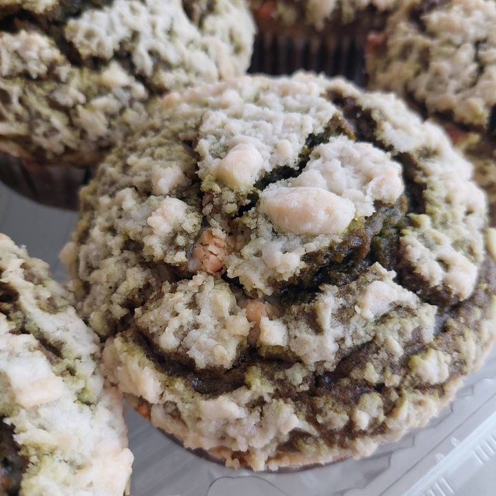 抹茶の味がしっかりしているし、上の部分のクランブルがサクサクしてて、中の白い塊がホワイトチョコみたいな味で、香りも食感も良くてとにかく美味しいんです!!