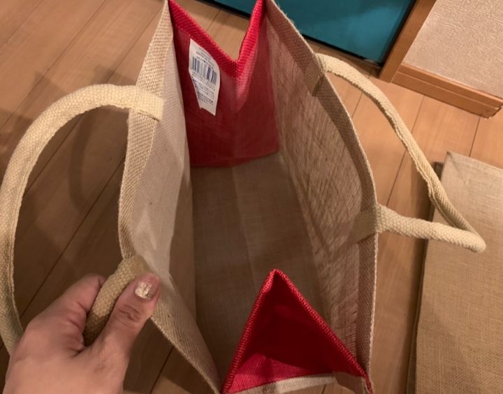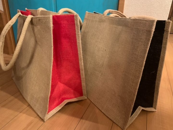 サイドにカラーが入った限定ジュートマイバッグ 499円