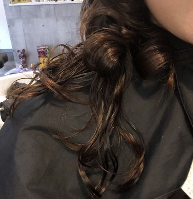 インスタなんかによく載ってますけど、コテ巻風のデジタルパーマ、機械を外した直後はグリングリン!笑