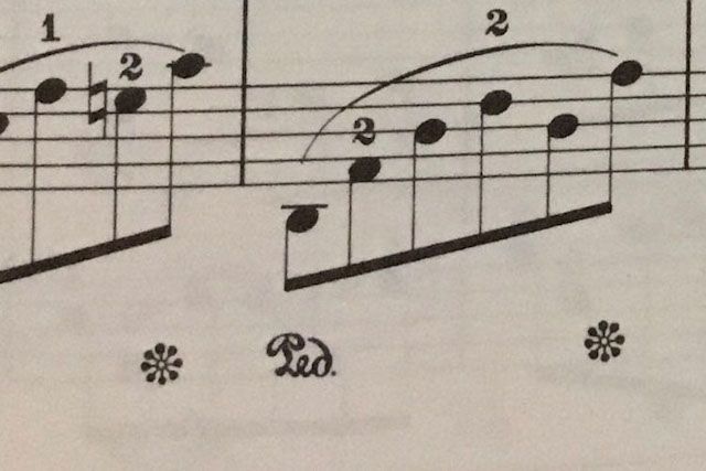 ピアノを演奏する際に、"ペダルを踏む"という意味の記号を楽譜では「Ped.」という文字で表されるのですが、一体どんな形をした記号なのでしょうか?