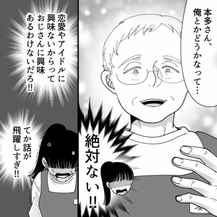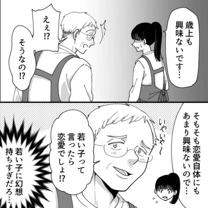 3. 「年上なら俺とかどう?」なぜか同僚オジに恋愛対象としてみられている私。あまりの勘違いっぷりにドン引きしてしまい・・・