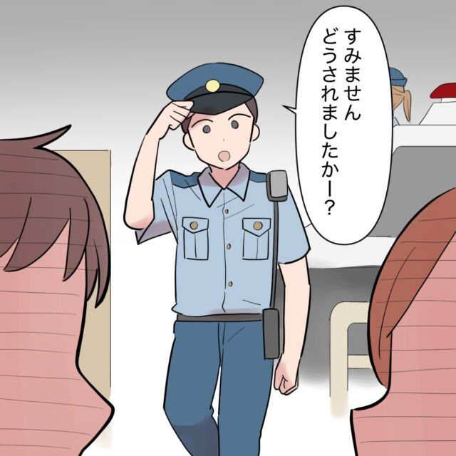 パトカーから警察官がおりてきて・・・。