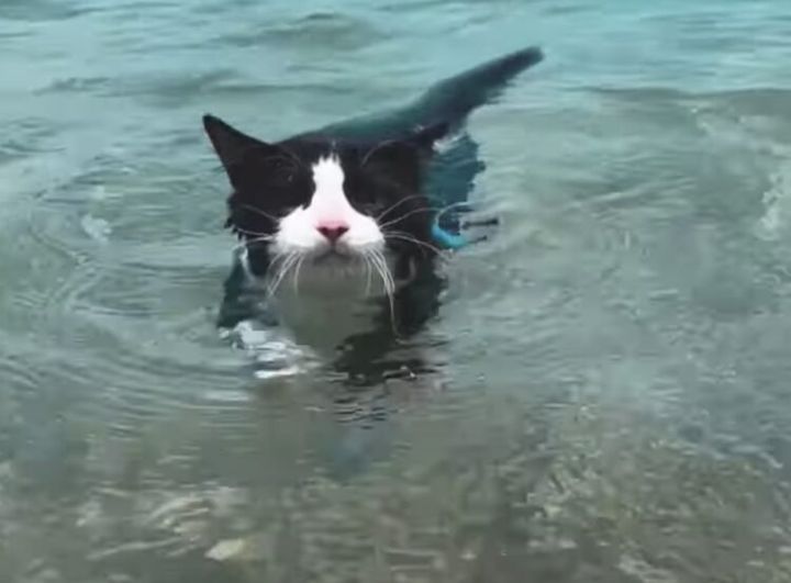 イヌに「犬かき」を教わった猫、見事な泳ぎを披露!