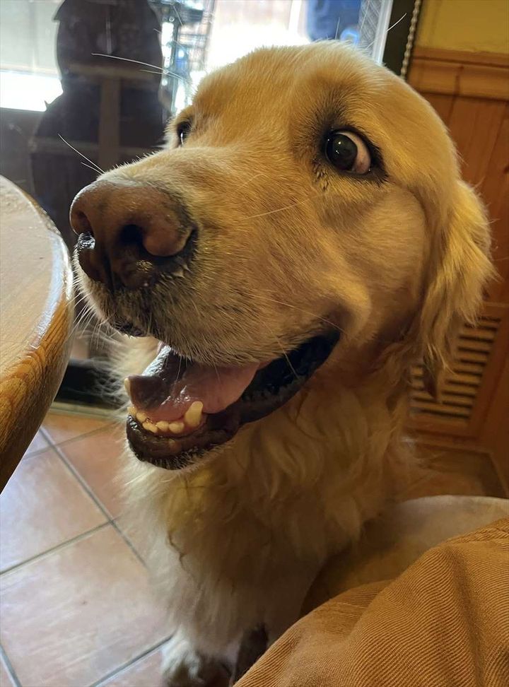 3. キラッキラの笑顔のゴールデンレトリバー。自分のごはんが運ばれてきた時のリアクションに「かわいらしい反応」「待望の笑顔~」