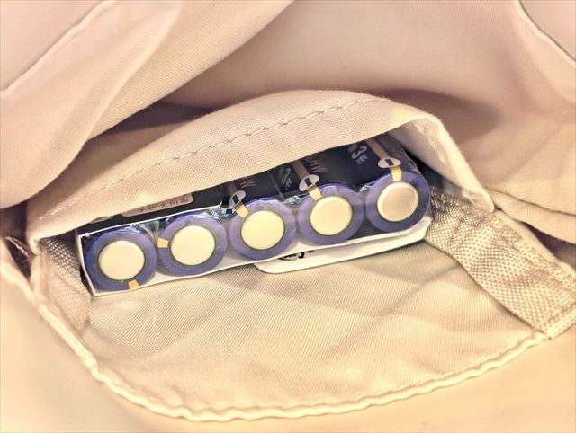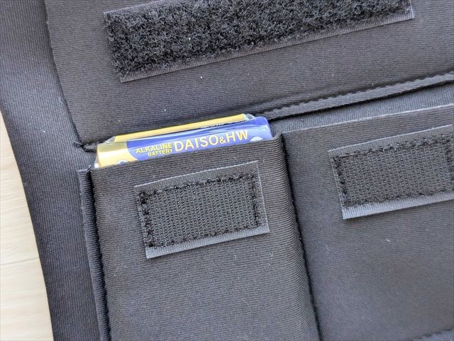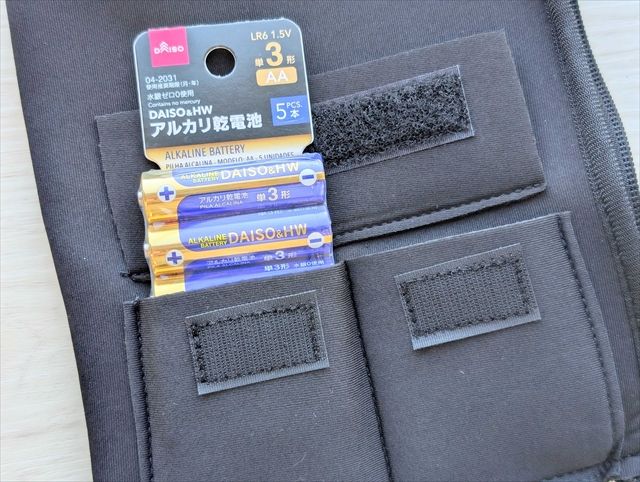 内側には交換用電池のポケットが付いており、単三電池がそのまま入りました。