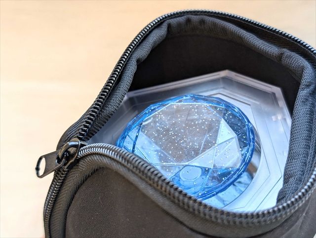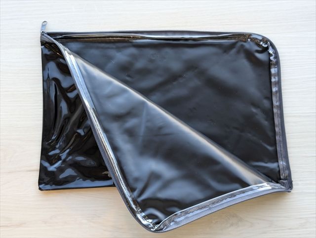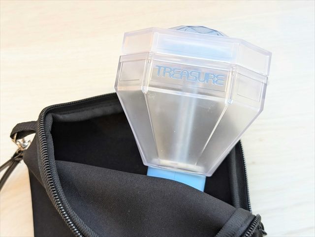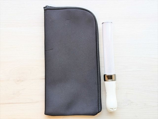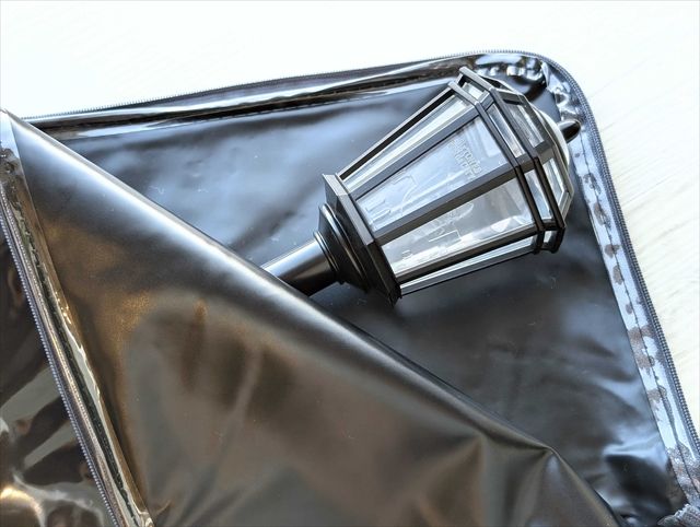 ビニール素材で、表面は光沢感があり、つるつるしています。内側はさらさらとしているので、ペンライトがケースにくっつく心配はなさそうです。薄くて軽く、ケースそのものがかさばらないため、公演前にペンライトを取り出した際も鞄の隙間に入れることができます。