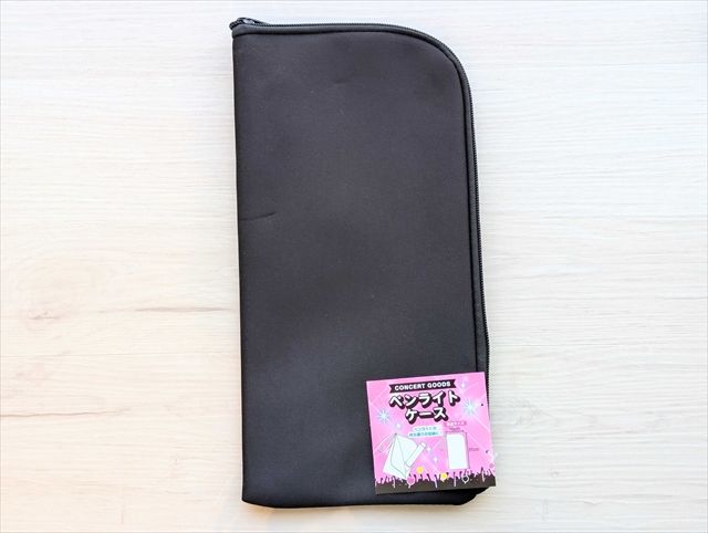 サイズは縦約31cm、横約16cmでスティック状のペンライトがすっぽり収まります。開け口は側面に沿ったL字型です。