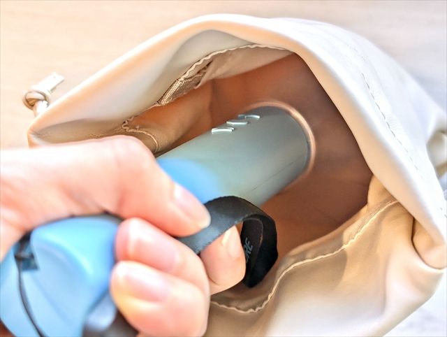 こちらのペンライトも問題なく入ります。持ち手を上にして入れると締めやすく、ポーチの形を保ったまま入れることができます。また、取り出してすぐに使えるので便利です。