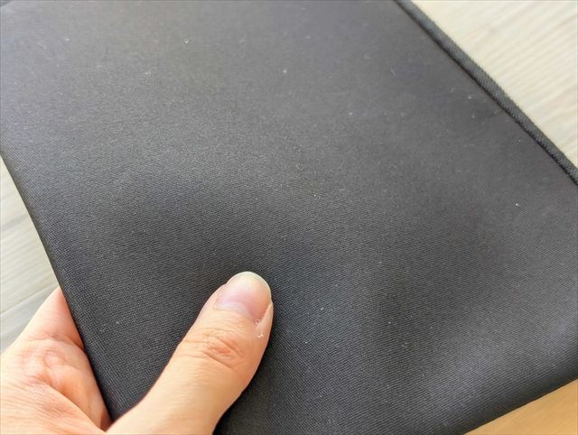 素材はポリウレタン、ポリエステル、ポリスチレン。ダイソーのものと比較すると生地そのものに厚みや柔軟性があるので、ビニール生地よりほかの荷物との摩擦やキズから保護してくれそうです。