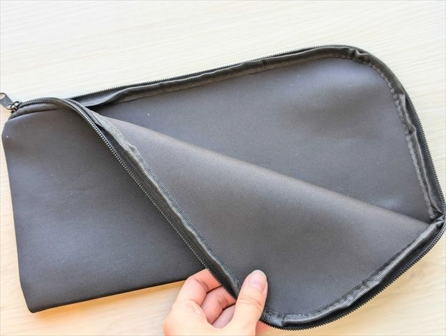 チャックを閉めるときに少し引っかかりますが、生地が少し伸びるためなんとか入れることができました。