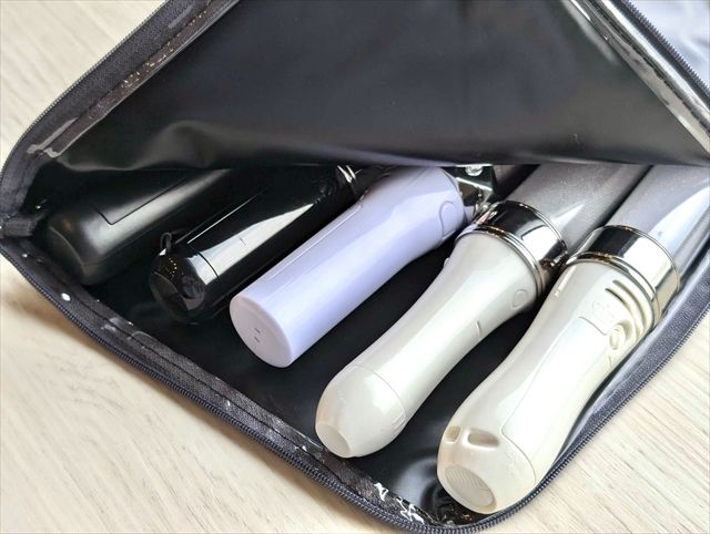 手持ちの形状が異なりますが、全て同様のサイズのものになります。5本横並びでぴったり入りました。