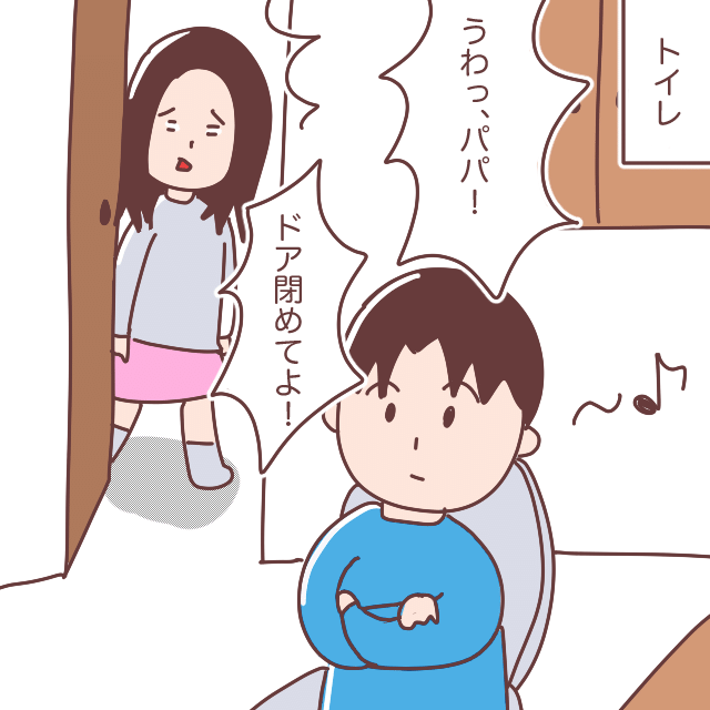 「!!!うわっ、パパ!ドア閉めてよ!」