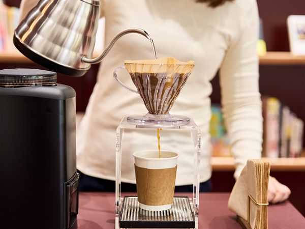 コーヒー豆を購入し、豆を挽いてお湯を注ぐ設備を使って、自分でハンドドリップを行う体験もできます。香り高いコーヒーを片手に、制作活動もはかどりそうです。