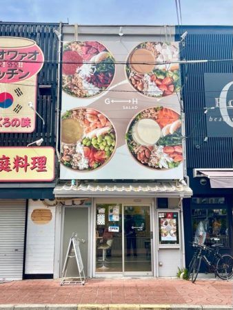 「GH SALAD」さんは、甲子園駅から徒歩約5分、甲子園球場やららぽーと甲子園のそばにあるサラダボウル専門店。 大きなサラダの写真の看板が目印です!