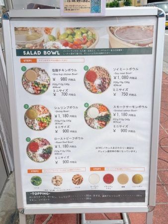 注文する際はメインの食材、土台の食材、ドレッシングをそれぞれ選びます。 メインの食材は「塩麴チキン」「ソイミート」「シュリンプ」「サーモン」「ローストビーフ」があり、お肉・魚介とどれも魅力的です! 土台の具材はリーフ・グレイン・ペンネと選べて、リーフはリーフのみ、グレインとペンネはリーフも入っているという内容だそうです。ドレッシングは4種類から選べましたよ!