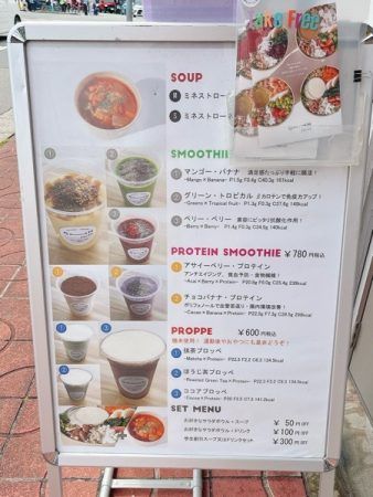 サラダボウルがメインですが、スムージーやプロテインドリンクといった、これまた美容や健康に配慮されたドリンクも揃っています。 「アサイーベリープロテイン」(780円)を注文してみました!
