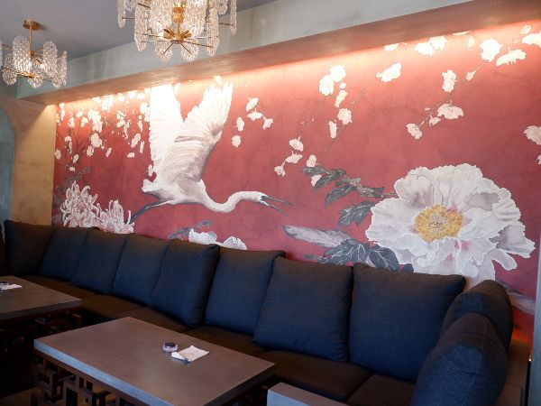 「白鷺珈琲」は、店内の壁に美しい白鷺が描かれています。白鷺は道後温泉で傷を癒したという逸話で有名です。さらに、壁には夏目漱石「坊っちゃん」の登場人物のひとり、マドンナも描かれています。