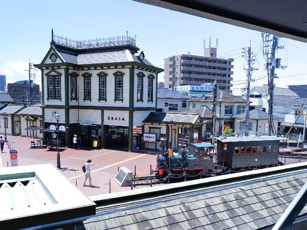 「白鷺珈琲」は道後温泉駅前という立地の良さに加え、おしゃれで落ち着いた雰囲気が魅力のカフェです。開放的な窓際の席に座ると、道後温泉駅の駅舎や坊っちゃん列車がみえ、レトロな景色が広がります。