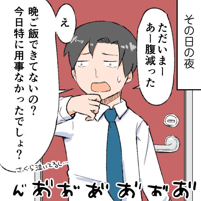 腹ペコで帰って来たのに夕飯の準備が出来ていなくて、思わず