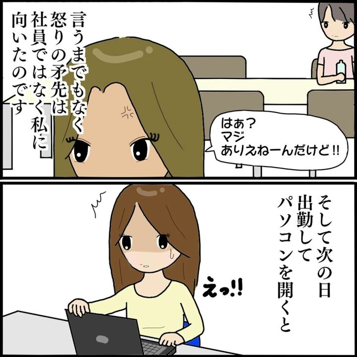 大声で好き勝手言われ、流石にマズいと思ったぱるるさんが誤解を解いてもらうために社員に相談しますが、状況は悪化。ぱるるさんがついに退職を考え始めた翌日、決定的な事件が起こってしまいました。