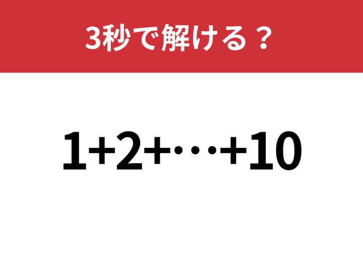 もちろん1+2+3+・・・+10と地道に計算していけば答えは出せますが、もっと簡単な計算方法があるんですよ!