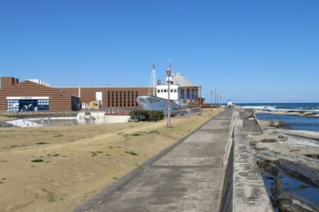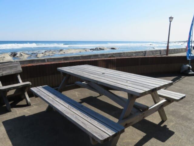 道の駅の海岸線に、整備された海岸プロムナードから眺める大海原の姿は壮観です。海から吹き寄せる潮風はとても爽やか。