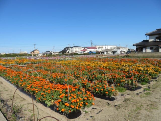 フラワーロードをはさんだ山側のエリアにはきれいなお花畑も。例年1月から3月の春の花シーズンには、ストック、キンギョソウ、ポピー、ヤグルマソウ、キンセンカなどが咲き誇ります。