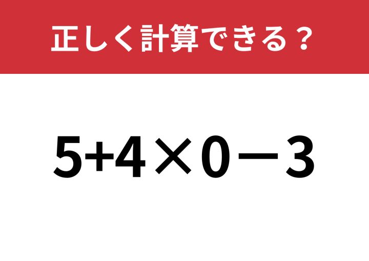 3. 簡単そうに見えて間違える人が続出!?「5+4×0−3」正しく計算できる?