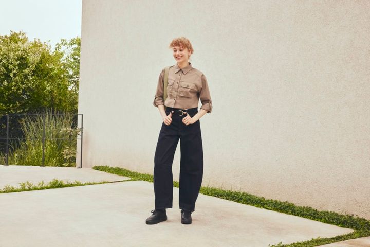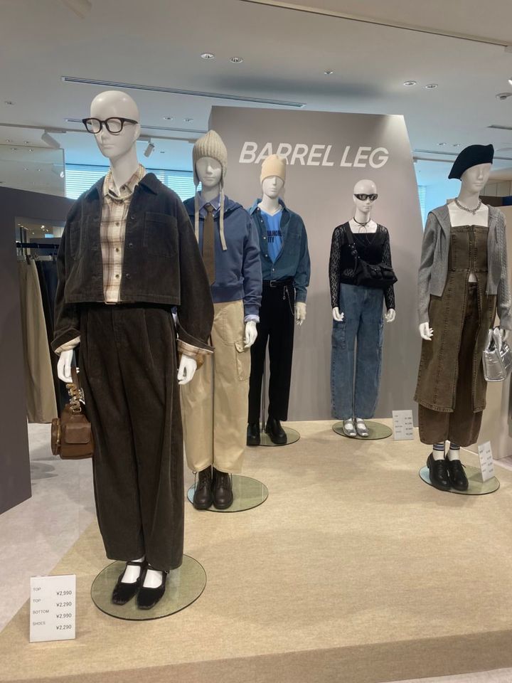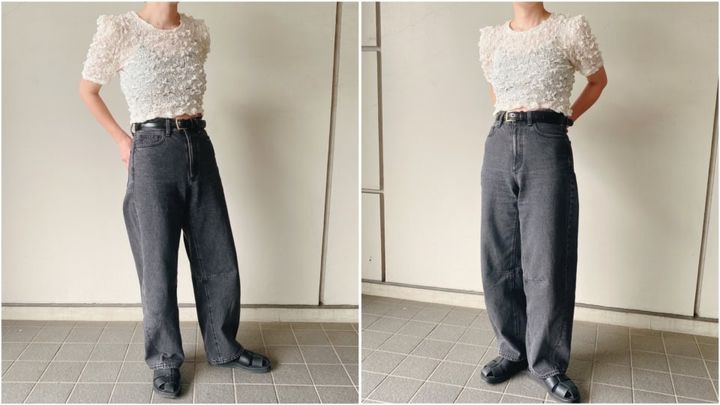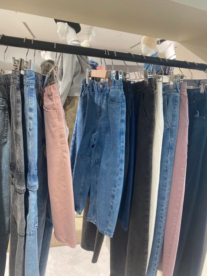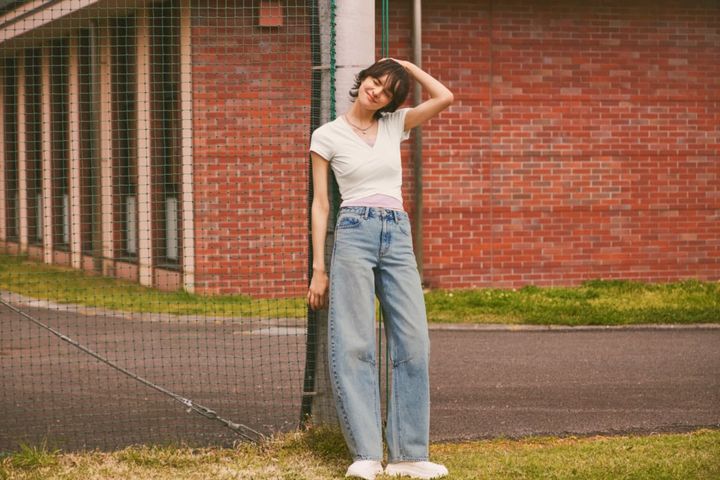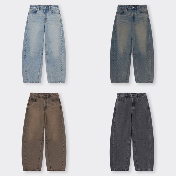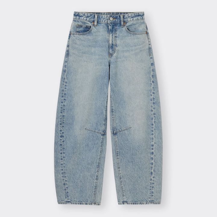 先シーズンから話題の「バレルレッグボトムス」です。バレル=樽のような丸みのあるシルエット、が特徴。GUはこれをいち早く取り入れて「バレルレッグジーンズ」を販売。すぐに完売してしまったのですが、なんと最近、また再販が叶ったそう(※一部店舗およびオンラインストアのみ販売中です)!