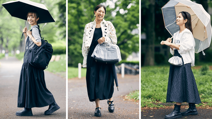 【梅雨コーデ】雨でもキレイめ!「黒スカート」の着こなし4つ