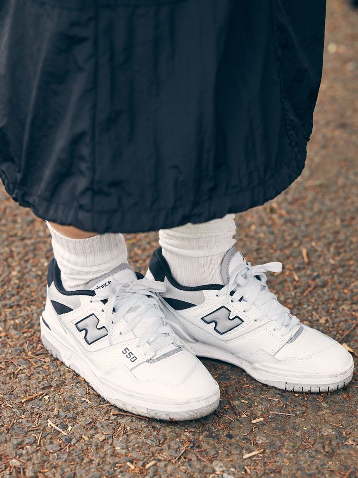「ワイドパンツが好きな私。雨だとどうしても濡れてしまうので、今年の梅雨はGUで見つけたカーゴスカートにトライしてみました。甘すぎないシルエットと撥水という機能性、Sサイズに嬉しい丈短めがオンラインで販売されたのが決め手です。足元は靴下とスニーカーでボリューム感を意識してバランスを取りました」佐野奈苗さん・主婦/154㎝(5歳女の子ママ)