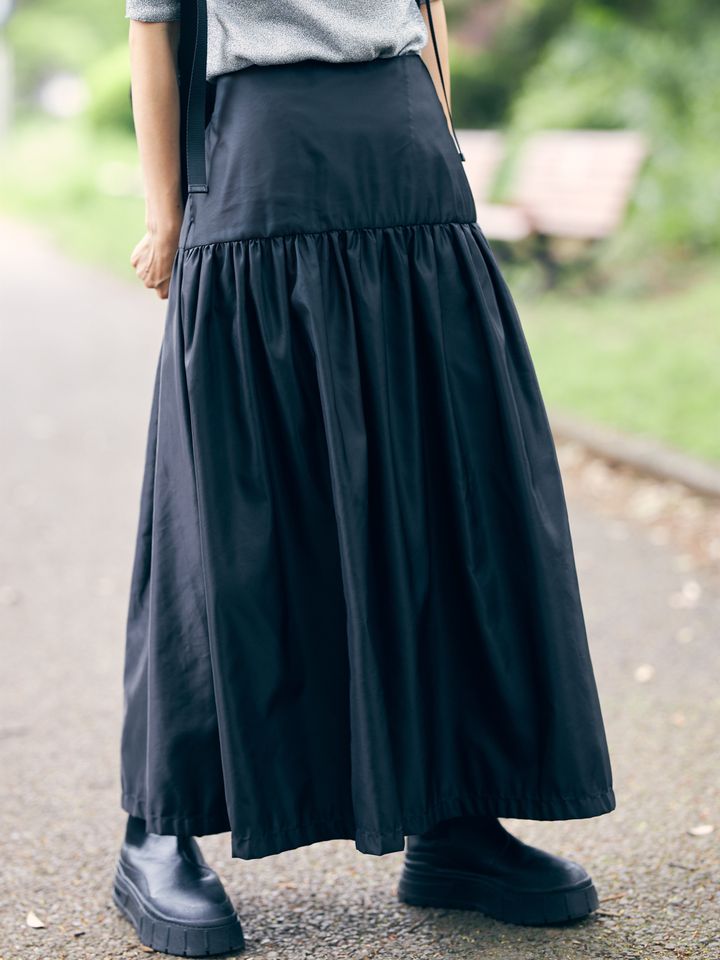 梅雨シーズン到来。どんよりする季節には、汚れが気にならずおしゃれしている感も出せる黒いスカートがおすすめ。雨の日も楽しく過ごせる着こなしをピックアップ!