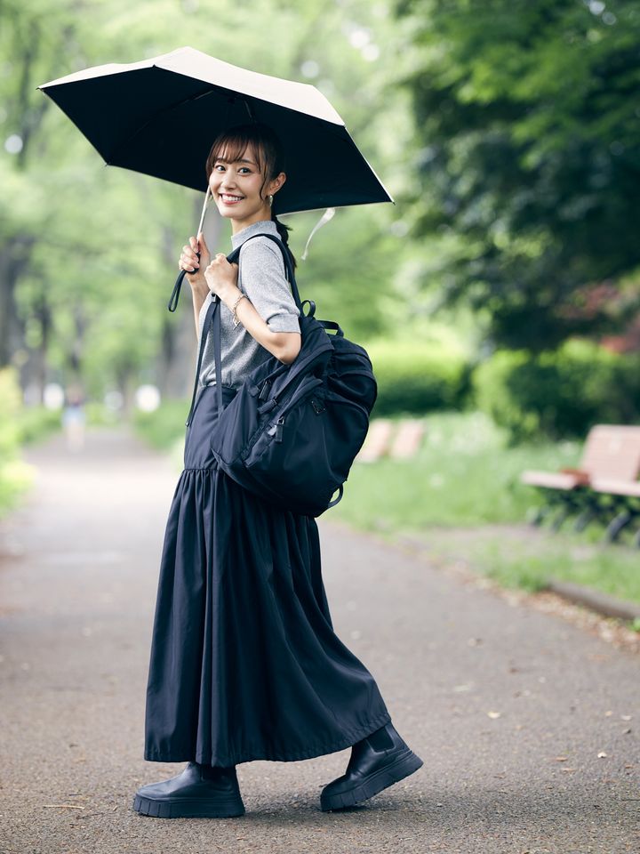 3. 【梅雨コーデ】雨でもキレイめ!「黒スカート」の着こなし4つ