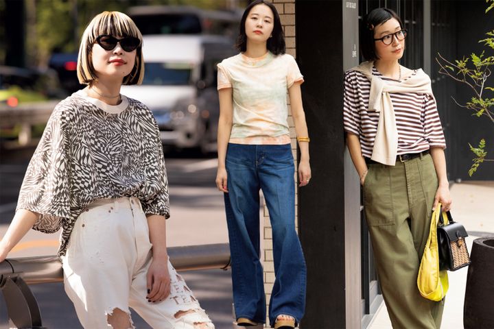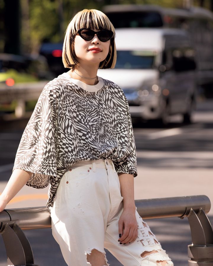 Tシャツ好きのミューズのみなさんに、柄Tシャツの着こなしを披露いただきました。タイダイやボーダーなど、1枚でも様になる柄Tはコーデの主役に。デニムやワークパンツなどカジュアルボトムと好相性。
