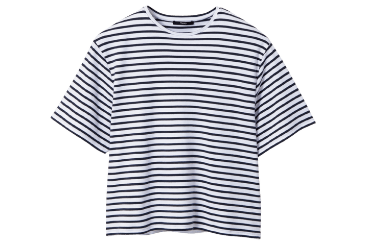 品よくきまる細かめピッチ。ボーダーTシャツ¥16,500(セオリー/リンク・セオリー・ジャパン)
