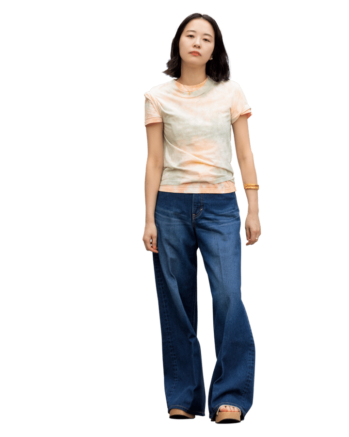 別注Tシャツ各¥19,800※色違いを重ねて着用(共にカナコ サカイ)、別注デニム¥22,880(カナコ サカイ×リー/全てエディション 表参道ヒルズ店)、Cartierのネックレス、CELINEのブレスレット、JIL SANDERのシューズは本人私物