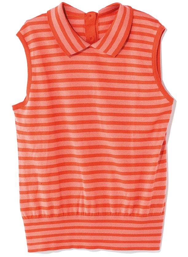 夏に着たくなるポップな配色のノースリーブポロニット。