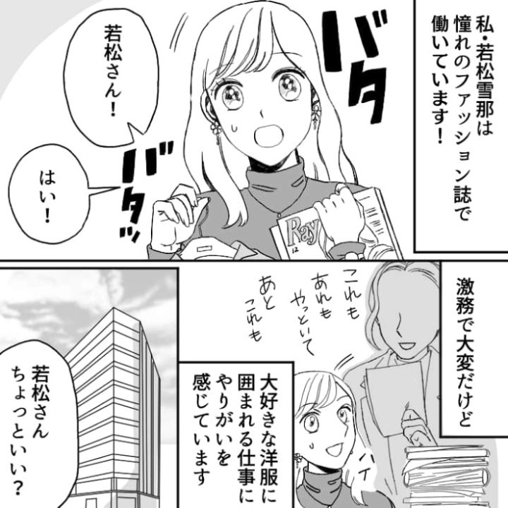 憧れのファッション雑誌の編集部で働く主人公。忙しいながらもやりがいを感じているようです。