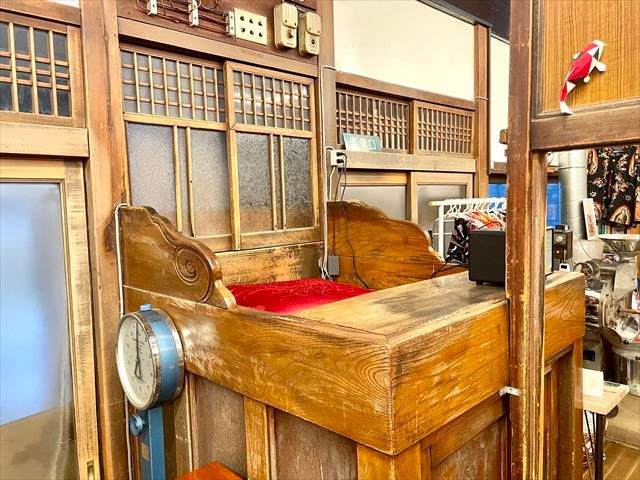 ほかにも、荷物かごや入り口横の体重計、建具の模様付きすりガラスなど、ところどころから当時の面影が伝わります。