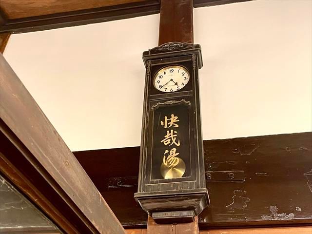 長い時を刻んできたのであろう、「快哉湯」と記された振り子時計も(残念ながら今は止まっています)。