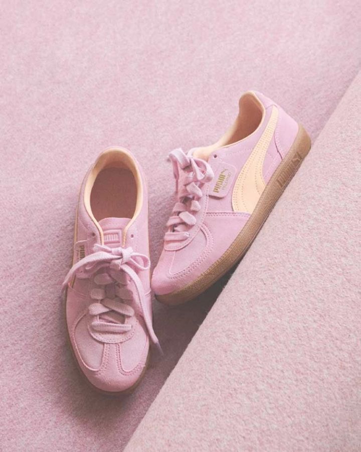 ベビーピンクにスエード生地で映え確実。さらに、クラシックな定番ソールを備えたアーカイブモデルが今の気分。