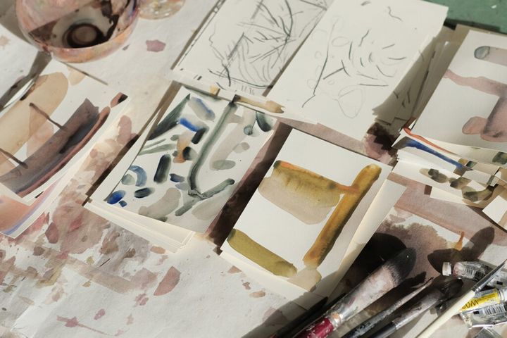 書画の筆先に、文字という記号を越えた風月が込められるように、彼女の引く線の交わりから生まれる、抽象と具象が混成する絵画からは、幾重もの風景の輪郭が浮かび上がる。その筆致は、美しさと切り離すことのできない「影」と向き合い、万物が両義的であることを顕そうとする試みでもあるという。