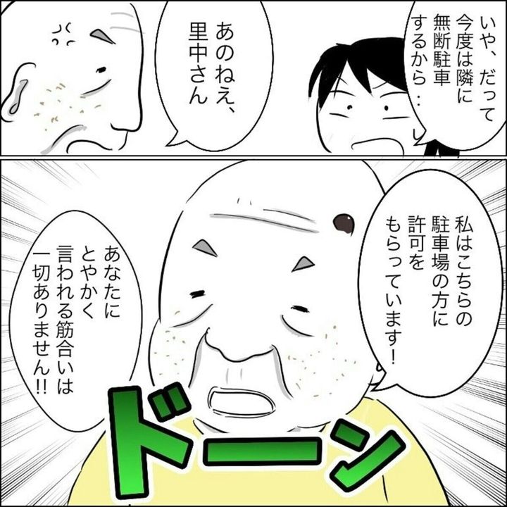一筋縄ではおさまらない隣人に駐車をやめさせるべく、Aiさんはこのあと夫と協力して無断使用された住人について調べ、再び無断駐車をする隣人宅へ出向きます。