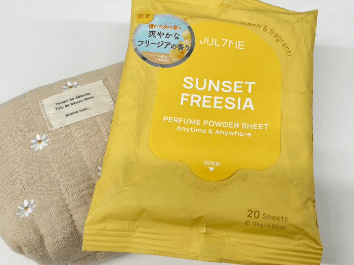 ご紹介したいのは、ジュライミーの「フレグランスパウダーシート サンセットフリージア」。