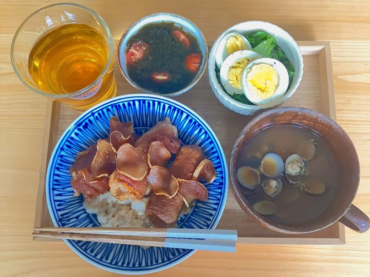 近所の信頼できる飲食店に「息子のごはん準備できていないから何か良いのない〜?」と駆け込んだり、もずくなどすぐに出せるオカズを常備しておくことで、なんとか成り立っている、息子の早飯。