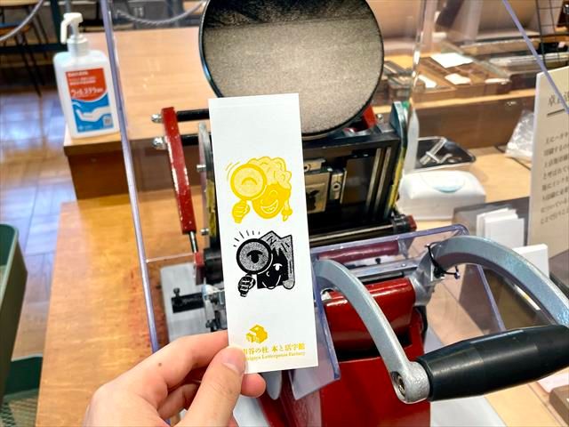 こちらの卓上活版印刷機を使ったしおりへの印刷は、予約不要で体験可能でした。