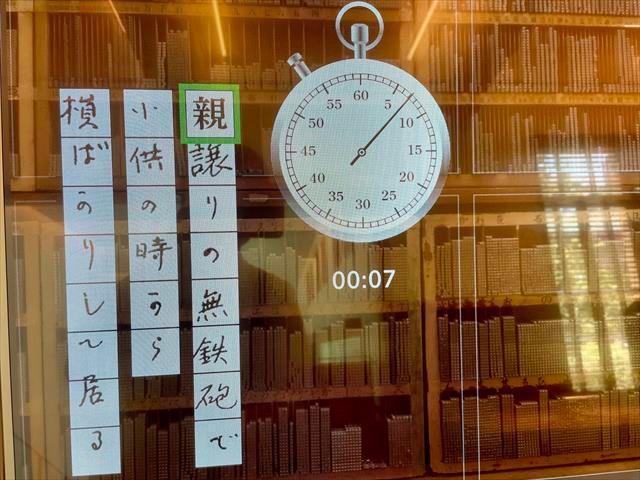 筆者も挑戦しましたが、「親譲りの無鉄砲で」の「親」はどこに……。とモタモタしているうちにタイムアップ。2分かけて探せたのはわずか8文字でした。